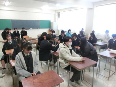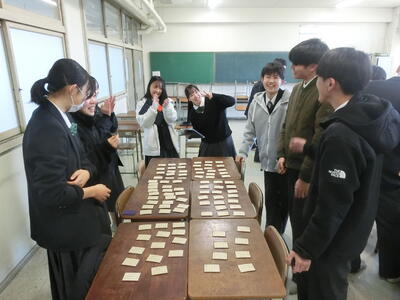 12/23火 学年レクレーション(2年生) 投稿日時 : 9:38 明石西高校教員 カテゴリ:49回生 終業式前日のLHRを使い、2年生が学年レクレーションを行いました。 クラス対抗で、各教室を回り、イントロクイズ、百人一首、物の重さ計り、ストップウォッチを使ったゲームなどに挑戦しました。 活動の内容は、学年団の先生たちがそれぞれ考えたとのことです。 生徒を楽しませようという、学年団の愛を感じた2時間でした。