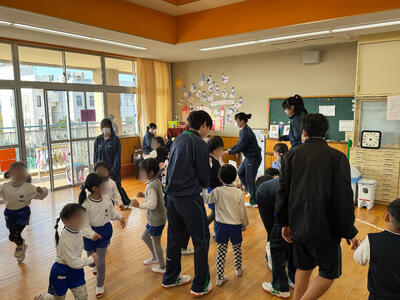 生徒たちは2度目の訪問ということもあり、すぐに園児たちとも打ち解け、楽しそうに遊んでいました。