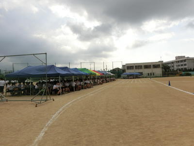 暑い中でしたが体育館に集まり、学年の先生たちの話を聞きました。