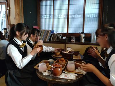 ↑朝から生徒がコーヒーを販売していました。これも接遇を学ぶ授業の一部とのことです。美味しいコーヒーと笑顔をありがとう!