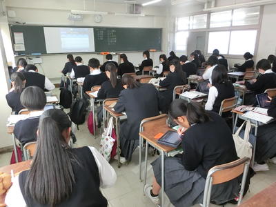 また、普通科の発表の後に、2組の国際人間科の生徒の発表が英語で行われました。