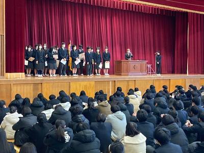 An award ceremony was held at the gym of Akashi Nishi Senior High School in the 7th period on October 9, 2025, and eight DGA students were awarded.