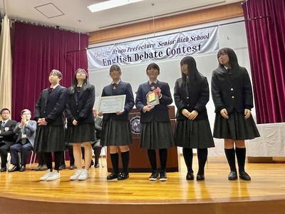 決勝では、国際(肯定)対葺合(否定)がホールの舞台上で行われ、0-6で葺合が勝利、優勝をしました。明石西は、18校参加のなか、ベスト4となり、3位の表彰(表彰状と盾)を受けました。本校は、近年予選を2回勝利し、ベスト8に2回進出したことはありましたが、予選を通過しベスト4になったのは、史上初の快挙です。チームの皆さんが、本番で最高のパフォーマンスを発揮しました。また、2-8のクラスメートが課外やD&Dの授業で手助けしてくれました。ありがとうございました。