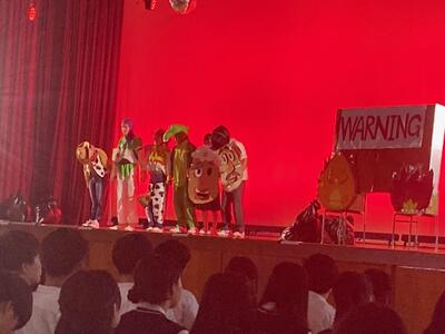 All the 1st-year classes took part in a preliminary round of the chorus competition. The 1-8 class sang a school song and a song "This Is Me."