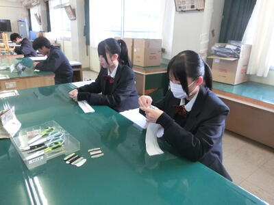 1年生の家庭基礎では、手縫いの基礎を実習しています。