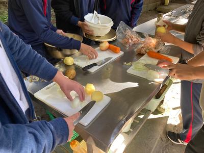明石市よりも気温は低かったですが、自然に囲まれた中で班ごとに協力してカレーを作りました。
