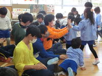 あいにくの雨なので、全員が体育館でドッジボールとなりました。