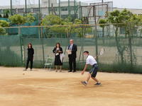 快晴のもと、サッカーの授業です。ロングキックのテストをするとのことでした。