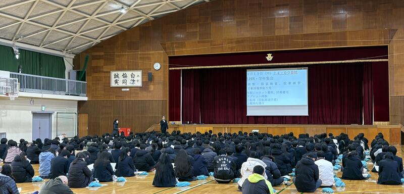 登校最終日となる今日は1限目に学年集会がありました。卒業に際してのiPad関連や自由登校、進路、生活について先生方からお話があり、区切りの日となるからか生徒の雰囲気がいつもと違ったような気がします。