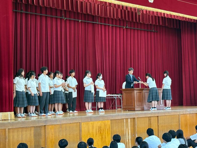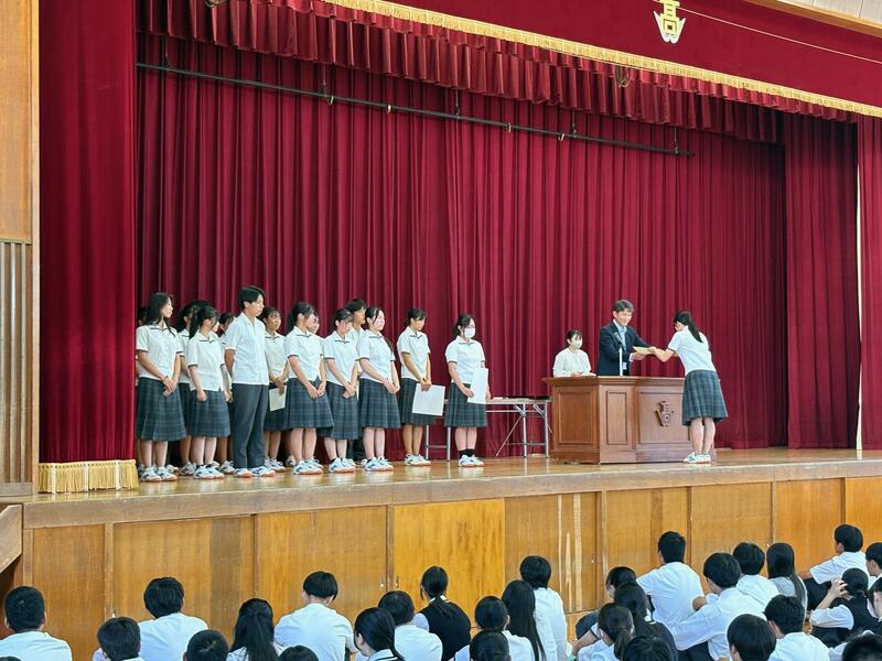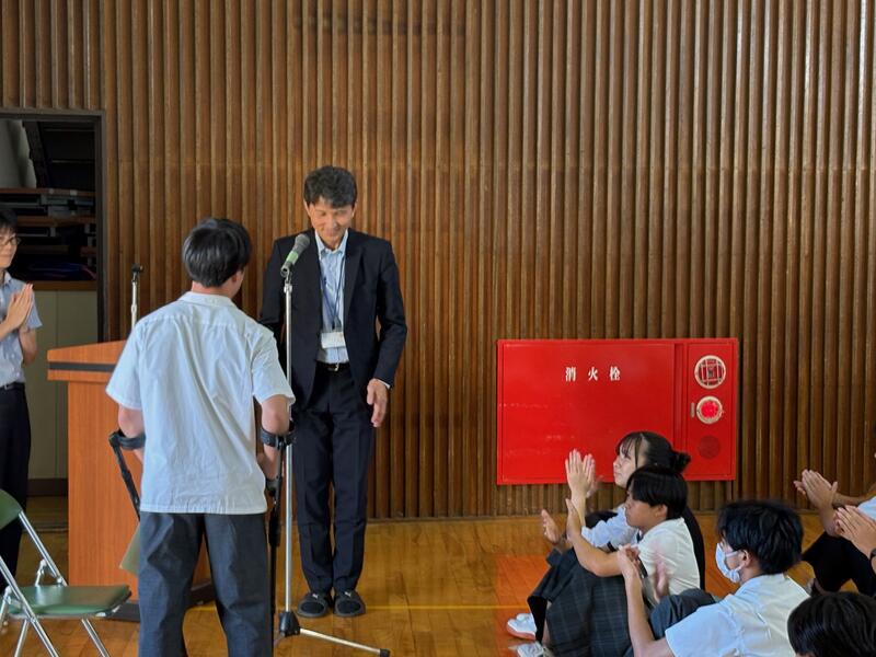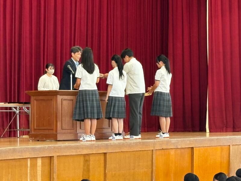An award ceremony was held at the gym of Akashi Nishi Senior High School in the 7th period on October 9, 2025, and eight DGA students were awarded.