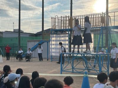 7月20日(土)に二見西小学校で行われた、夏休みえんにち にボランティア部と有志の生徒が20名参加しました。運営スタッフとして、えんにちの店番やビンゴ大会の司会などを行いました。
