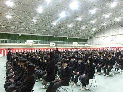 最後に、翌日の卒業式に向け、全校生で式歌の練習をしました。1年生は卒業式には参列しないので、今日が見納めです。巣立っていく3年生の先輩に、大きな拍手を送りました。
