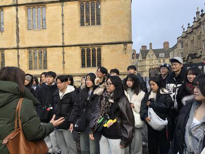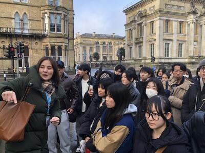 大学街オックスフォードに来ました。現地ガイドのナタリーさんの英語を聞きながら、街を周ります。
