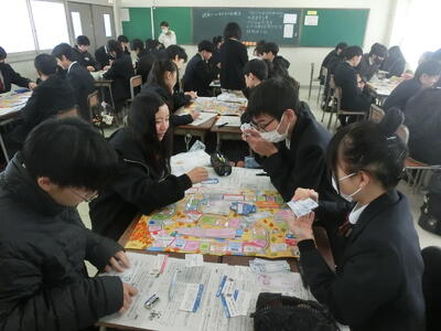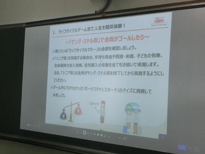 保険会社のご協力で「将来のリスク管理と資産形成」を、ゲームを通して学ぶ授業です。