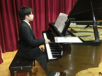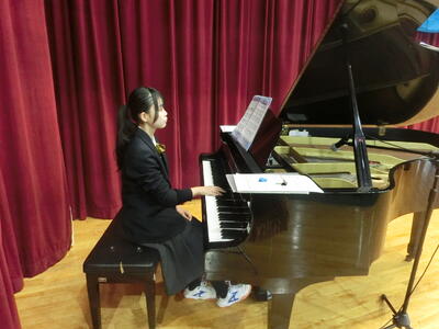 卒業式予行では、卒業生のうち2名が式歌のピアノ伴奏を披露し、早くも感動がありました。