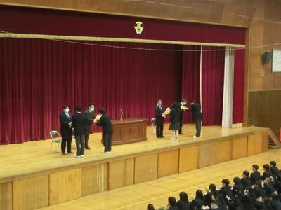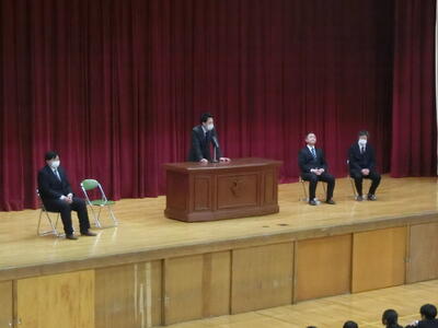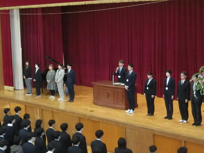 その後、離任式が行われました。4名の先生方が来校され、最後に西高生へ伝えたいことをお話ししていただきました。