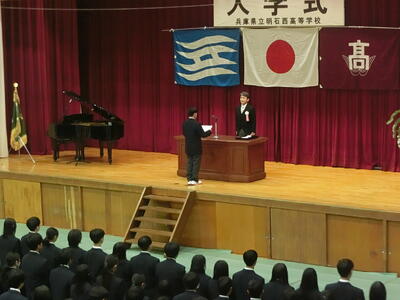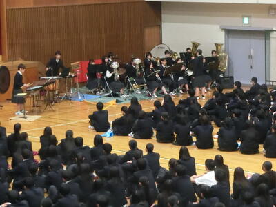 新入生と在校生それぞれの代表者による挨拶のほか、吹奏楽部による歓迎の演奏がありました。