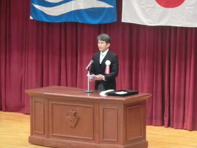 校長式辞では、素直な心をもって自分自身の心に耳を傾け「自分自身を知る」ことを心がけてほしいとメッセージが贈られました。