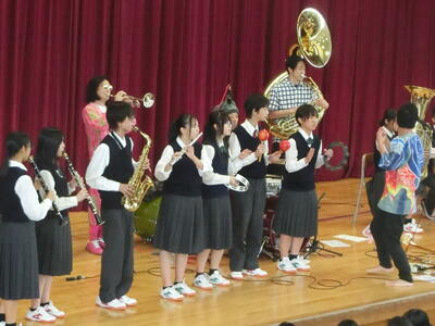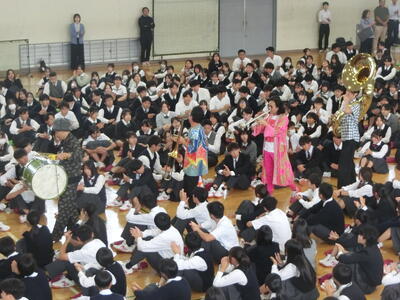 アンコールでは、サプライズで吹奏楽部と「聖者の行進」をコラボ演奏し、客席を練り歩きました。
