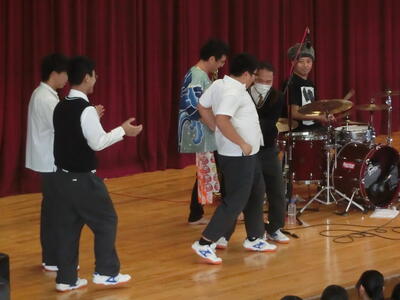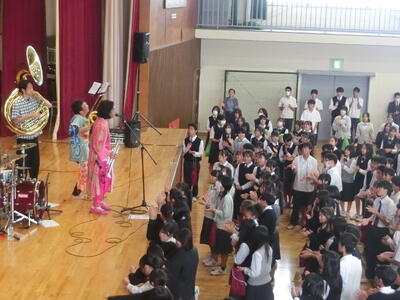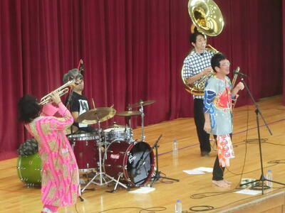 ニューオーリンズスタイルのジャズバンドであるBlack Bottom Brass Bandをお招きし、体育館で1時間半のライブを鑑賞しました。