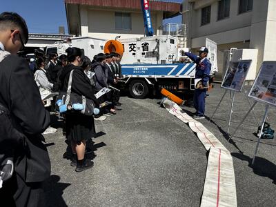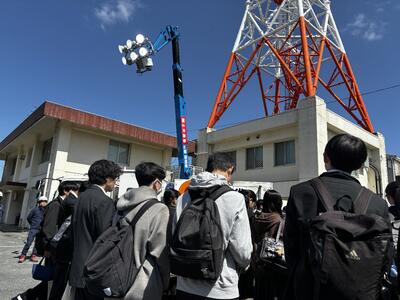 次は、車両基地です。主に災害時に活躍する照明車と、冠水した道路から水をくみ上げるポンプ車を見せていただきました。