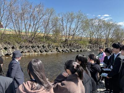 さらに、猪名川の河原まで下り、環境保全や植生、外来種などについて教えていただきました。