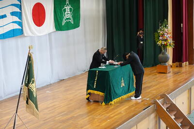 2,3年生からは校歌を披露しました。1年生にも早く覚えて大きな声で歌ってもらいたいですね。