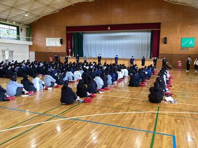 諸注意の後、修学旅行委員が修学旅行を楽しもうという声かけに対してみんなが元気に返事をしてくれました。