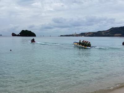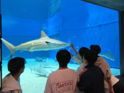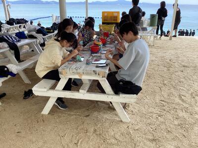 午後からは奇数クラスが美ら海水族館へ向かい、偶数クラスはマリン体験を行います。