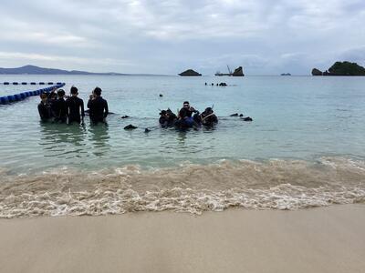 午前中奇数クラスはマリン体験を行い、偶数クラスは美ら海水族館へと向かいました。