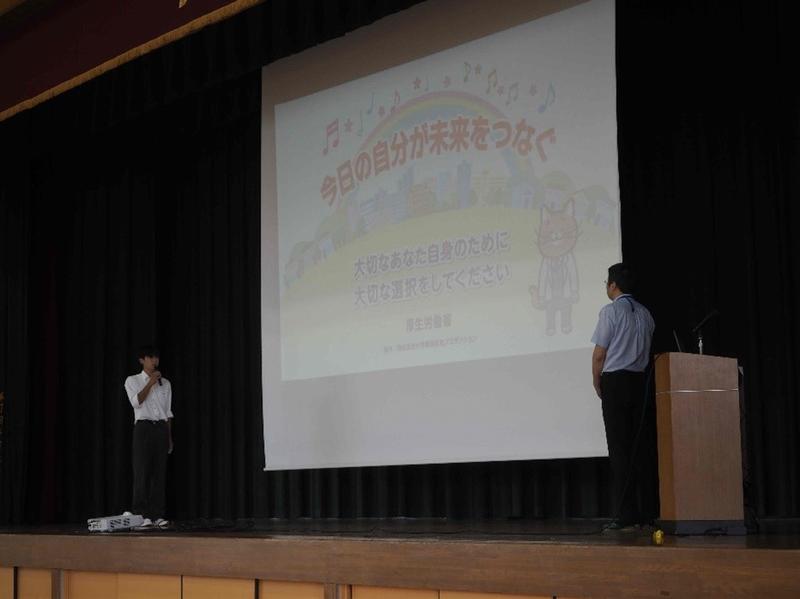 本校学校薬剤師の樋口先生にお越しいただき、1年生を対象に薬物乱用防止講演会を実施しました。身近な「違法薬物」に関することや、誘われた時の具体的な断り方など、自分の心と体を守るための大切なお話をしていただきました。