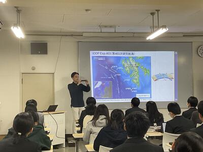 研究内容や、実際に北極に行って海底を掘削してきた経験をお話しいただき、また、高校での勉強や大学での勉強に対する考え方なども教えていただきました。