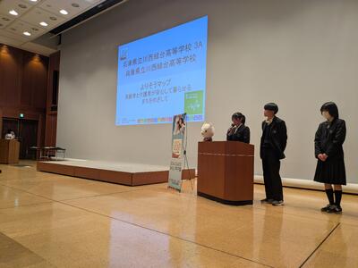 川西緑台・川西明峰・川西北陵・猪名川の4校が集い、各校の探究の成果を発表しました。