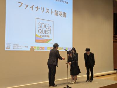 今年度2年生が総合的な探究の時間でエントリーした探究コンテスト「SDGs QUEST みらい甲子園」において、関西地区ファイナリスト12チームの中に本校から1チームが選ばれました。