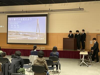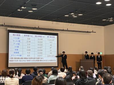 本校からは、総合理数コース2年生の探究科学物理班が「割り箸で人を支えよう」を発表しました。