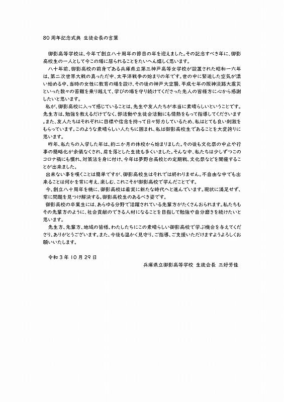 2021年 80周年記念式典 生徒会長の言葉 PDFはこちら→80周年記念式典生徒会長の言葉.pdf