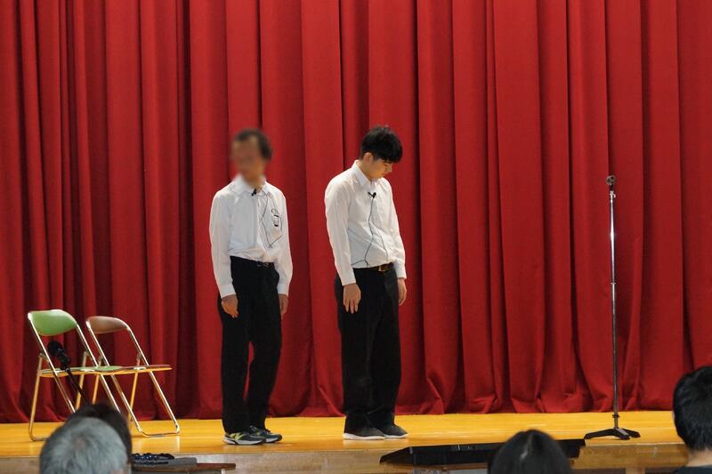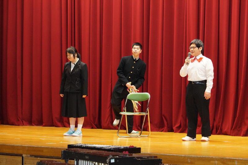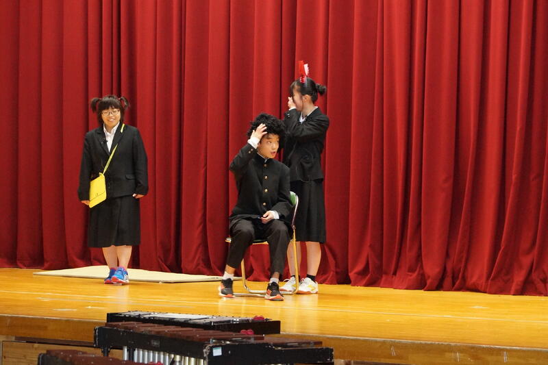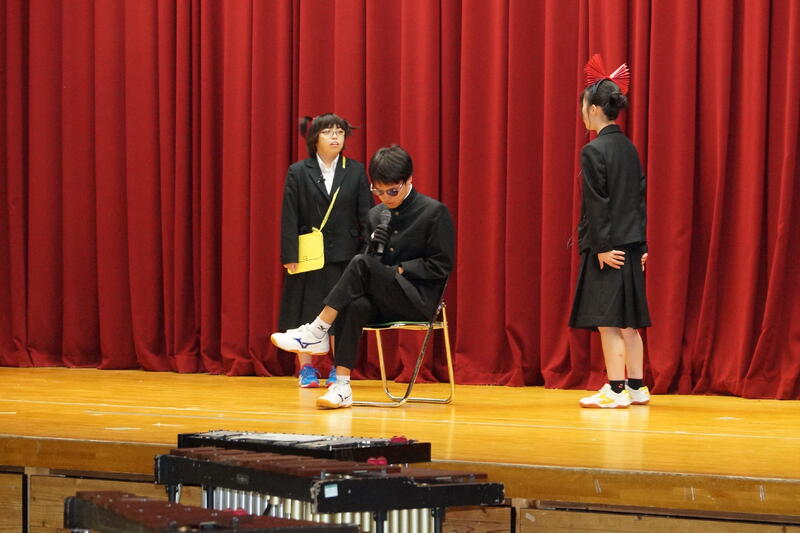 高等部は、豊岡市にある芸術文化観光専門職大学の先生方から教えていただいた劇の作り方を活かし、3つの創作劇を披露しました。ステージの最後には、高等部全員で音楽の授業で練習した「ドレミの歌」を合奏と「We will Rock you」をリズムタップで披露しました。