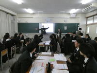 12月15日(月)放課後、3年次の就職内定者を対象に、ハローワークから郡様、上野様の2名の講師をお招きし、就職に向けてのグループ活動を交えた講話をしていただきました。