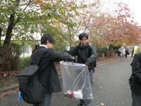 今回は学校周辺の紅葉を楽しみながら、和気あいあいと活動を行いました。小さいごみも見逃さず、見つけては拾って袋