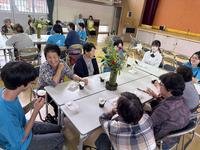本番後は、サロンのスタッフの皆様に作って頂いた「たこ焼き」を生徒と参加者の皆さまで班ごとに分かれ、食事や交流を楽しみました。