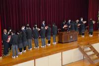| 離任式の様子 | 生徒会長の挨拶 |