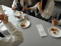 アントレプレナー 投稿日時 : 2023/07/14 商業科 カテゴリ:授業の様子 7月7日 今まで考えてきた商品の試作品を『おうちごはんCafeそらまめ』さんが作ってくださったので、試食をしました。 コープこうべさんの雑誌の取材もありました。 考えた商品は、バームクーヘンで大豆ミートのハンバーグをサンドした商品や、ラーメン、肉まん、ソトックソトック、ナスとピーマンの肉みそ炒め、ライスバーガー、餃子、タコス、山田錦の米粉を使った麺にミートソースを大豆ミートが驚くほど食べやすくなり、生徒たちも夢中になって試食していました。 タグ アントレプレナー 授業