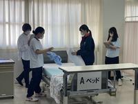 このフェアでは、出題された課題に対する介護の技術を競う「介護コンテスト」とベッドメイキングの技術を競う「ベッドメイキングコンテスト」が実施されており、3年生の4名が「ベッドメイキングコンテスト」に出場しました。