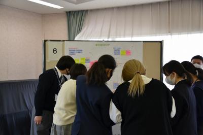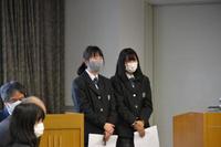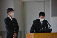 今年度は新型コロナウイルスの感染拡大防止のためにイベントが中止となることが多く、生徒たちはイベントにあまり参加できませんでした。そのため、今回のタウンミーティングでは1年次の生徒6名が興味のある分野を担当し、「将来の保育士として」「若者の住む町へ」「交通事故防止」の3つの分野で提言をしました。