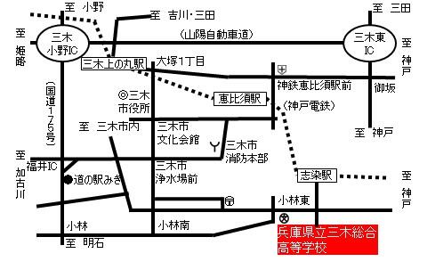 山陽自動車道で姫路方面からは「三木小野」、大阪方面からは「三木東」インター下車