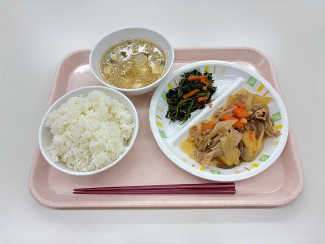 ごはん 豚大根(ぶただいこん)きんぴらごぼう 味噌汁(みそしる)