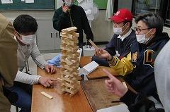次は学年対抗「紙コップタワー」と「イントロクイズ」。各学年の代表者は学年の威信を賭けて協力して取り組みました。