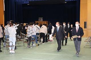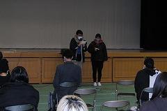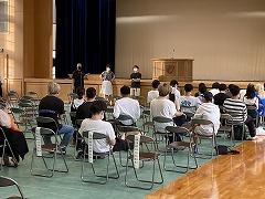 最後に、3年生へコロナ禍で先が見通せないため、修学旅行が中止となったお知らせがありました。