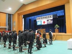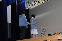 「卒業生を送る会」を行いました。今年は、ボーリング大会を開催することができました。久しぶりに全学年でボーリングを楽しむことができました。最後に、成績優秀者が校長先生より表彰を受けました。