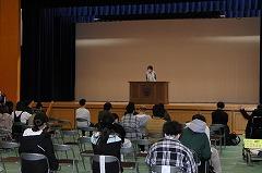 平通校長先生より、新学期を迎えるにあたってのお話をいただき、引き続いて佐藤教頭先生より震災についての講話を聴かせていただきました。